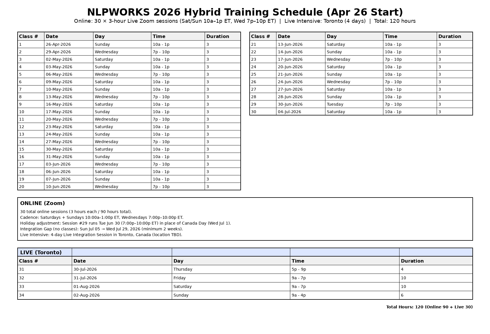 NLP 2026 Hybrid Training Schedule