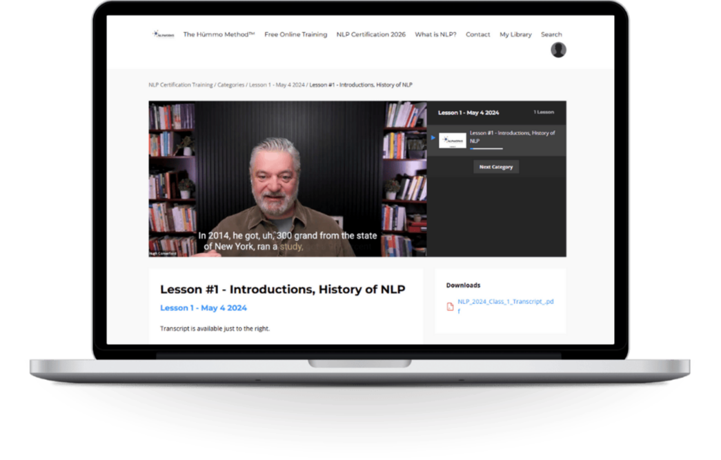 • 120 hours of live NLP Practitioner Training (April 4 – June 10 on Zoom)